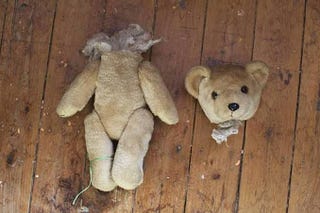 014 There is a giant, fuzzy, white teddy bear in the bathtub
